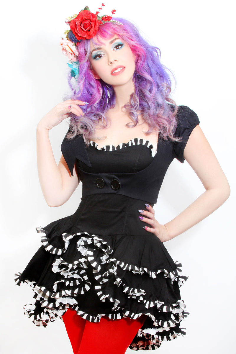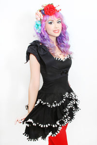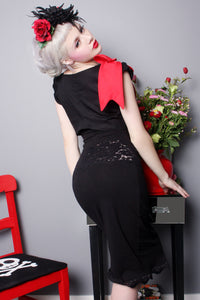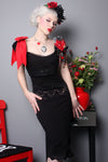 Part of the PinUp collection this little vest is cute over dresses or just a tank top and jeans. Features cap sleeves , double button front and cotton over sized bow at shoulder. "Make a chic statement with this versatile vest from our PinUp collection. Perfect for pairing with your favorite dress or a simple tank and jeans, this piece boasts cap sleeves, a unique double button front, and a bold, oversized cotton bow adorning the shoulder. You'll love how effortlessly it adds a touch of style to any outfit. Don't miss out on this must-have piece from our exclusive line!"