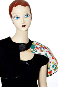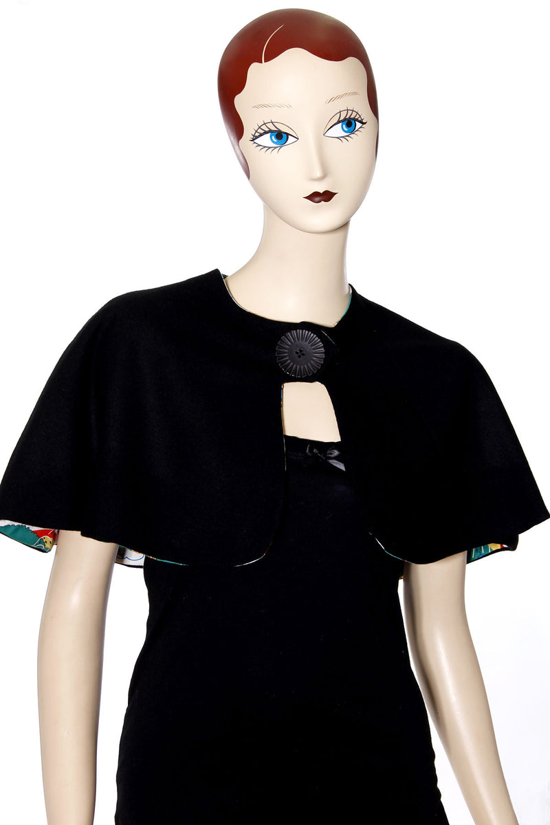 Black Wool Vintage Lady Capelet with Vintage Liner