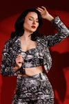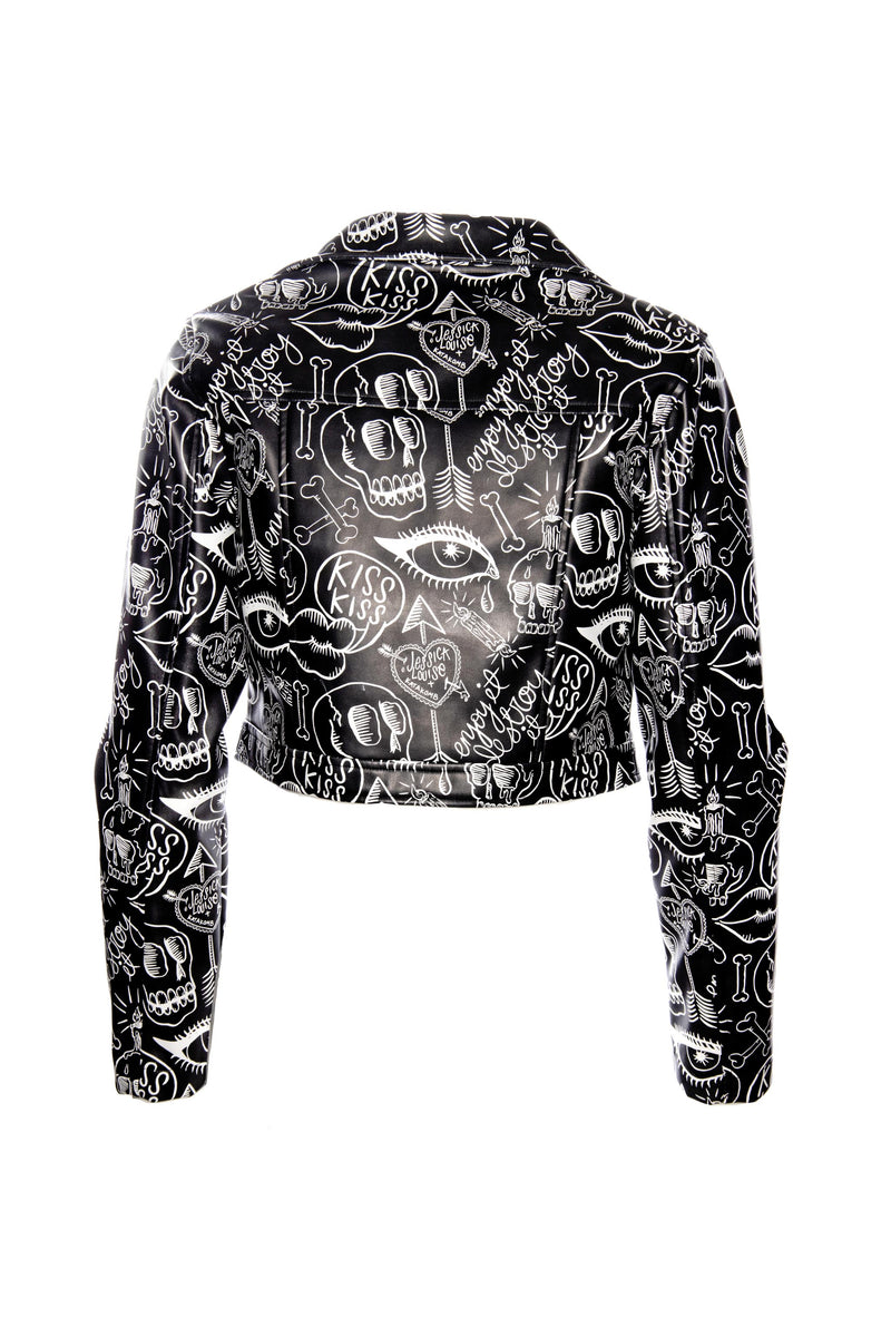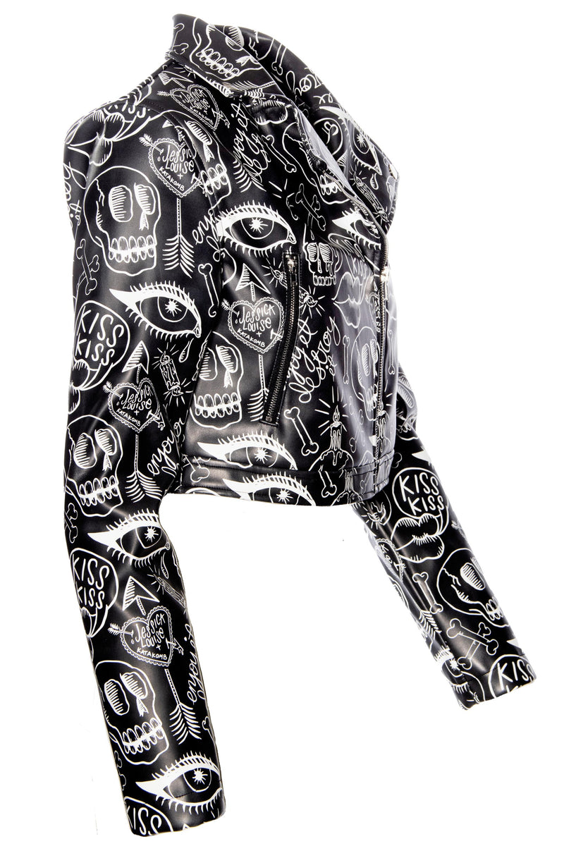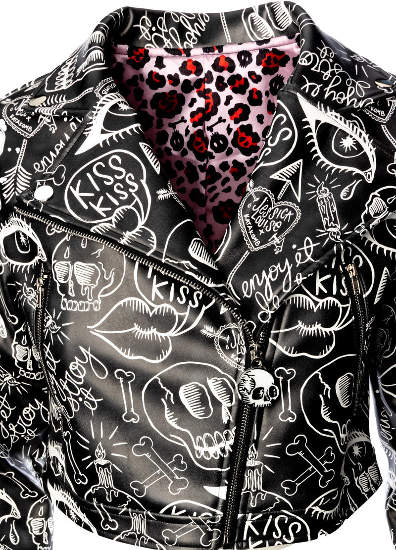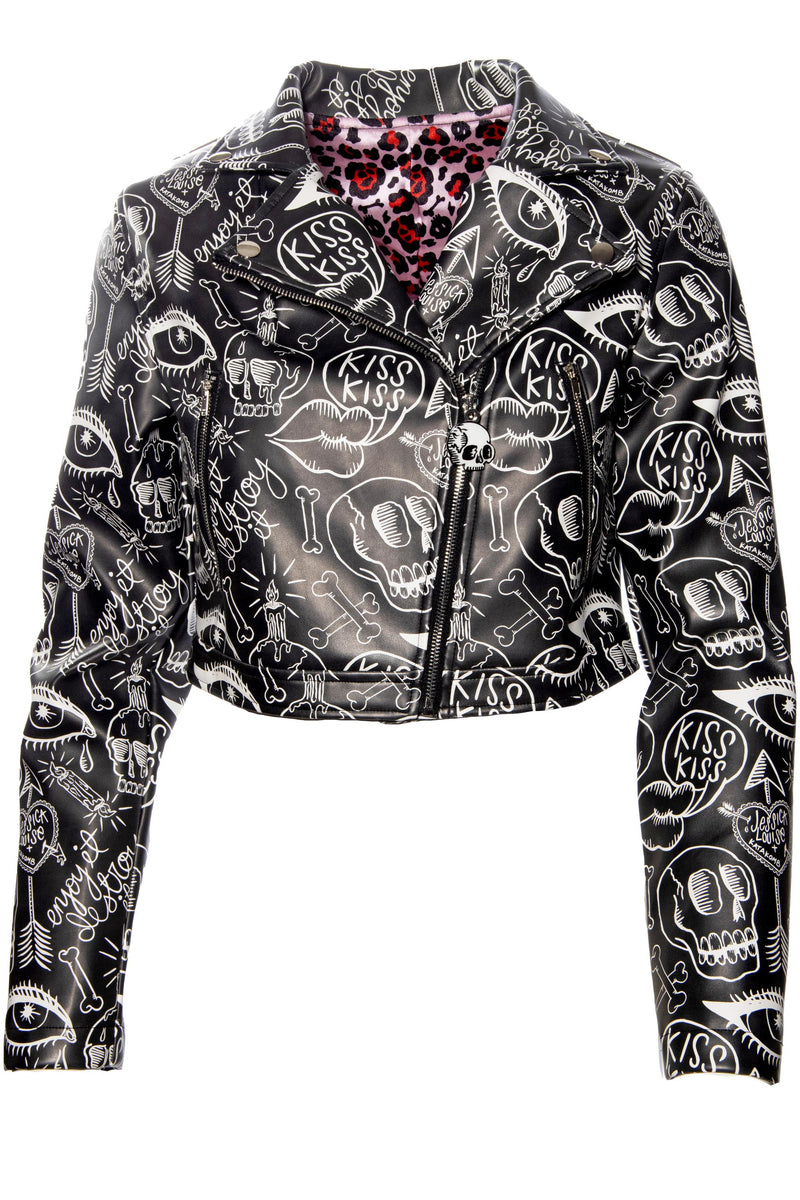 Jessica Louise Graffiti Moto Jacket – Vegan Leather Cropped Statement Jacket