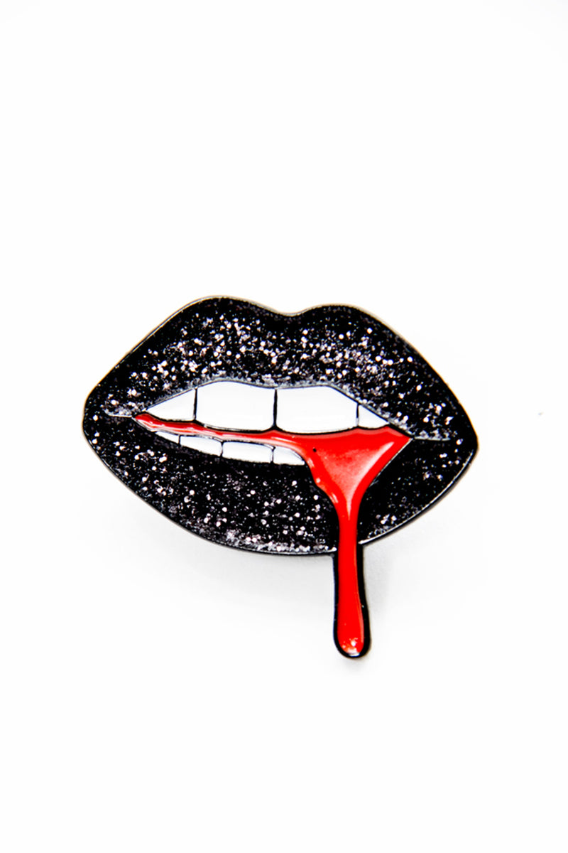 Black glitter lips pin blood drip.