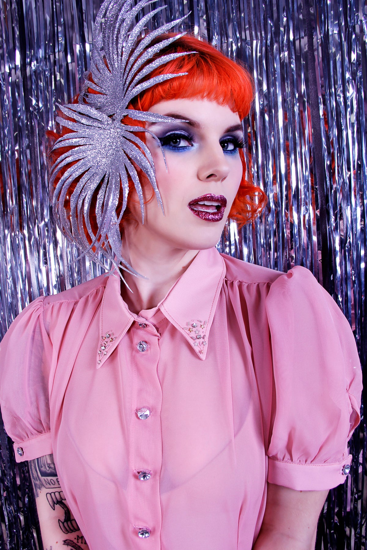 This cap sleeve blouse is detailed with a hand beaded collar. The beads are vintage, giving the garment a classic look. Additionally, the blouse is made-to-order, with a selection of 10 colors available. Custom color requests may be accommodated by contacting me via contact form :)