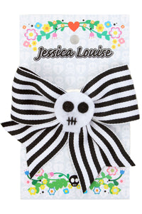 Handmade in-house, this hand-tied grosgrain ribbon bow features a handmade Jessica Louise felt skull at its center—a striking emblem of the brand’s edgy-feminine style. Each bow is meticulously crafted to hold its shape beautifully and last, while the clip back allows for effortless styling on hair, clothing, or accessories. A perfect statement piece that blends whimsy with sophistication.